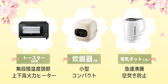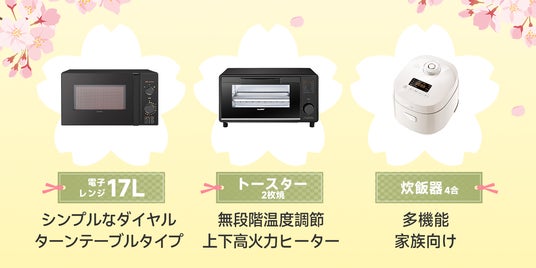 新生活がもっと便利で快適に!炊飯器、電子レンジ、トースター、電気ケトルなど、毎日の生活を豊かにする家電が今だけ特別価格で手に入るチャンスです。新しい生活にぴったりなアイテムが勢揃いし、どれも使いやすさと機能性を兼ね備えた優れた製品ばかり。毎日の料理が手軽に、美味しく、そして楽しくなること間違いなし!さらに、期間限定の大特価セールなので、欲しかったアイテムをお得に手に入れる絶好の機会。新生活をもっと便利に、快適にしたい方には必見のセールです。このチャンスを逃さず、最高の家電で新しい日常をスタートさせましょう!