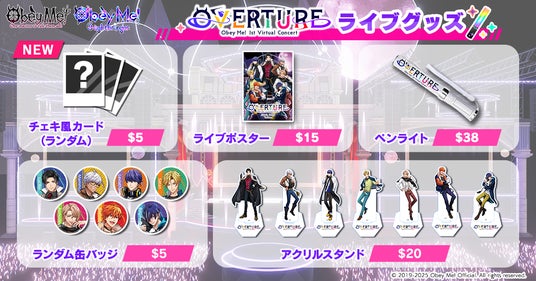 「Obey Me! 1st Virtual Concert - OVERTURE -」のキービジュアルを利用したグッズを販売いたします。ライブを記念したスペシャルグッズになりますので、是非、商品をお手に取ってお確かめください。