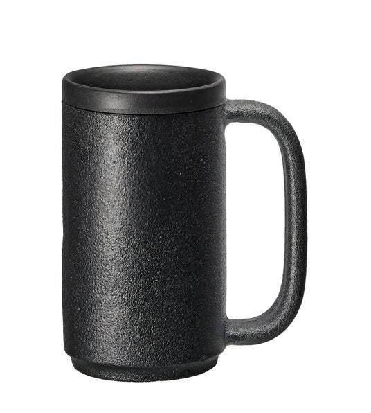 本製品は本体をスチール(鉄鋼)にすることで、高さ約12cmとコンパクトサイズながら、約2kgとこのサイズのジョッキではあり得ない重さに仕上げました。口に運ぶのが億劫になるため、飲みすぎを防ぎます。また、非常に重いため、飲みながら筋力トレーニング効果も期待できます。
