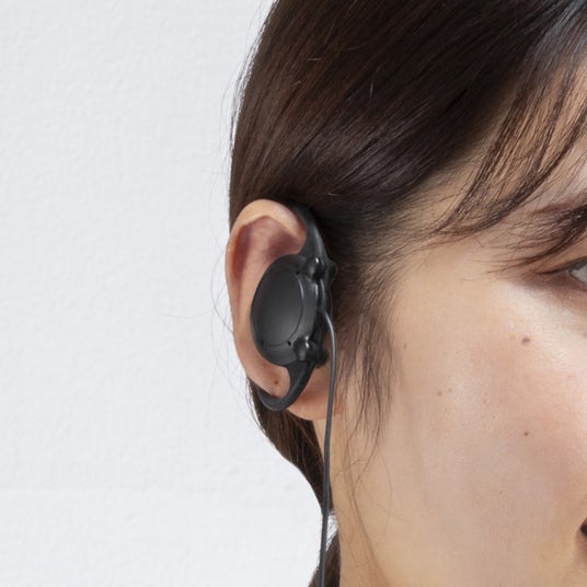 イヤホンは耳に挟んで装着するタイプなので、外れにくい構造になっています。