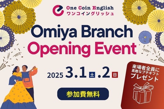 株式会社ワンコイングリッシュ(本社:東京都新宿区、代表取締役CEO:兒嶋 裕貴)が運営する1レッスン550円からの英会話スクール「ワンコイングリッシュ」は2025年3月1日に同社12校舎目かつ、埼玉県への初出店となる大宮校をオープンいたします。