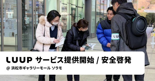 株式会社Luup(本社:東京都千代田区、代表取締役CEO:岡井大輝、以下「Luup」)は、2025年2月26日(水)11時より静岡県浜松市にて、電動マイクロモビリティのシェアリングサービス「LUUP(ループ)」の提供を開始しました。サービス開始初日には、浜松市後援のもと、静岡県警察および東京海上ホールディングス株式会社(本社:東京都千代田区、取締役社長グループCEO:小宮暁)と連携し「浜松市ギャラリーモール ソラモ」(静岡県浜松市中央区砂山町320-1)にて安全啓発イベントを開催し、電動キックボードや自転車の正しい交通ルールや乗車方法をレクチャーし、ご利用ガイドブックを配布しました。