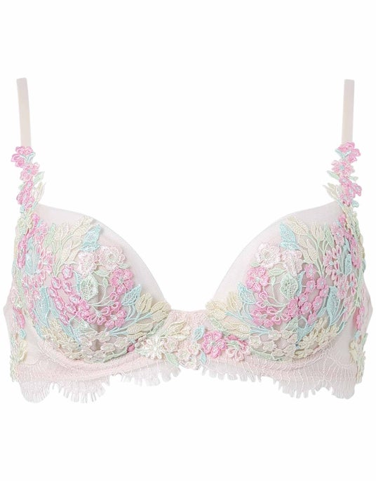 6月発売予定:73グループ可憐な花々を束ねたロマンティックなブーケをそのままランジェリーに仕立てたような、 至福をまとうコレクションです。 古き良き時代のクチュール感あるレースを、大花モチーフと小花アップリケで新鮮にアップデートしました。刺繍の重なりに工夫を凝らし、奥行きのあるレースが美しさを際立たせます。花々がもつ甘さだけでなく、ナチュラルでモダンな雰囲気も取り入れました。