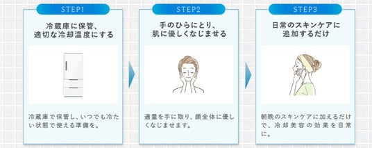 肌は温度が上がりすぎると、皮脂が過剰に分泌されることが研究で明らかになっている(*当社調べ)ため、冷却ケアで肌温を適切に保つ“肌温度ケア”をすることが、理想的な肌環境をサポートします。近年、SNSを中心に冷蔵庫で化粧品を冷やすことが発信されている一方、多くの商材は常温で使用する前提で作られており、急激な温度変化が生じることは想定されていないため、冷蔵庫で冷やすと品質が劣化してしまう可能性があります。当社はそういった消費者の声に着目し、冷やすことを前提とした新しい概念の“冷却美容”をブランドコンセプトに、美しい肌の維持だけでなく、日々の疲れた気分をリフレッシュする革新的な美容体験を提供いたします。