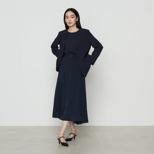ノーカラージャケット 39,600円、ブラウス 19,800円、スカート 28,600円 ※全て税込