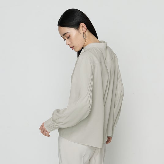 - 後ろ袖と袖口に繊細なピンタックのディテールを施しました。袖にボリュームを出すことで華やかな印象になり、袖口はピンタックによる多少の収縮で、着心地の良さがポイントです。