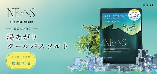 「フィッツコンディショニング」のネムスシリーズのバスソルトは、睡眠課題に向き合って生まれた香りを使用しています。おやすみ前のリラックスタイムを心地よくしたいという想いから、高温多湿な日本の夏の睡眠課題に着目し、湯上りにクール感のあるバスソルトを開発しました。ミント※1、ドクダミエキス※2、メントール※3を配合した「ひんやりクール処方」により、汗などでベタつきがちな肌もすっきり。暑い夏のお風呂上がりを心地よい涼しさで包み込みます。