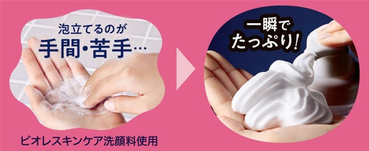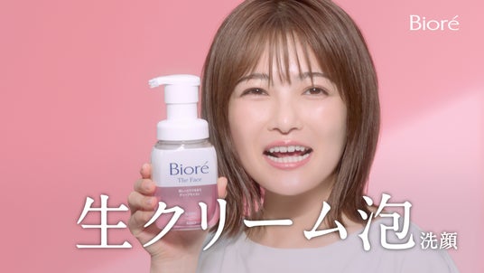 ビオレは、2022年、ビオレ洗顔史上最高クラスの生クリーム泡の「ビオレ ザ フェイス 泡洗顔料」を発売しました。累計販売数量は900万本*1 を突破し、お客さまからは、「今まではあまり泡立てがうまくできなかったけれど、押すだけでたっぷりの生クリーム泡で洗顔できて、とても便利!」、「これまで肌をこすってしまっていたが、『ビオレ ザ フェイス』の生クリーム泡で毎日の洗顔が好きになった」などご好評をいただいています。*2