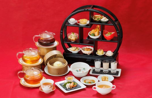 本商品は、アフタヌーンティーとは違い、前菜からセイボリー、デザート、ドリンクと食事感覚で1口サイズの様々な料理を少しずつ、3種の中国茶とともにお愉しみいただけるハイティースタイルの飲茶ランチとディナーです。