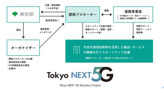 東京都では、5G技術及び次世代通信技術を活用した技術・サービス開発に取り組むスタートアップを、開発プロモーターと協働して支援する「次世代通信技術活用型スタートアップ支援事業(Tokyo NEXT 5G Boosters Project)」を実施しています。