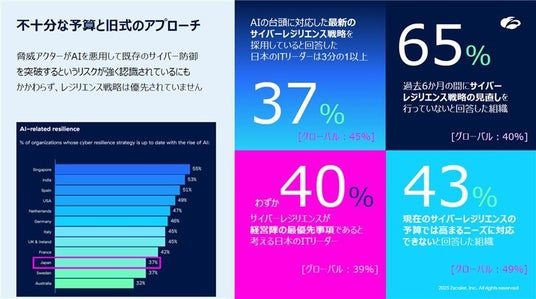 - AIを悪用する新たな脅威に備えた最新のサイバー レジリエンス戦略を講じている日本の組織はわずか37%