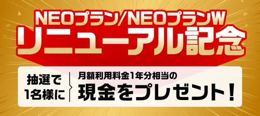 抽選で1名に、初月無料分を除くNEOプラン月額基本料金11か月分相当の23,032円を現金でプレゼント