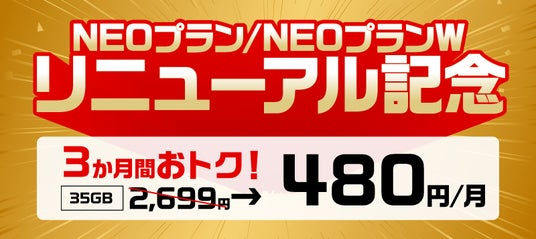 他社からNEOプランに乗り換え(MNP)で、3か月間月額基本料金480円に