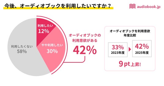 ■「オーディオブックを使ってみたい」が42%。2023年調査より利用意欲が9ポイント上昇