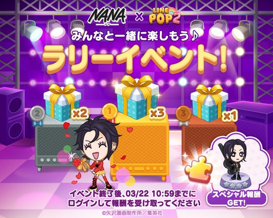 LINEヤフー株式会社は、当社が展開する6角形パズルゲーム「LINE POP2」(iPhone・Android対応/無料)にて、2月28日(金)より『NANA』とのコラボレーションイベントを開催します。