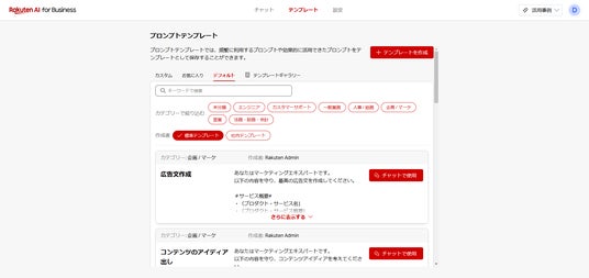 「Rakuten AI for Business」は楽天グループでの活用実績を基に設計された、ビジネスパーソンが使用しやすいシンプルで直感的に利用できるUIとなっています。