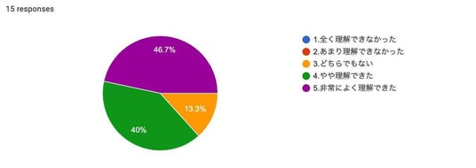 また「今回のワークショップを通じて、商品軸以外の販売促進施策(例:体験や意味づけ)を効果的に理解できましたか?」といった質問に対しては、85%の方が「理解できた」という回答をいただきました。