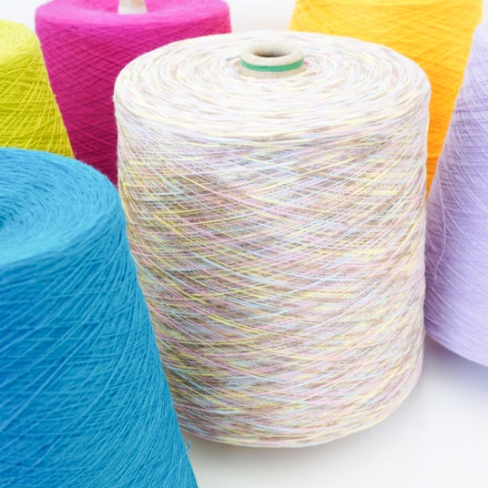 1本の糸にさまざまな色が染め分けられ、編み地に表情豊かな模様が生まれる特別な糸です。