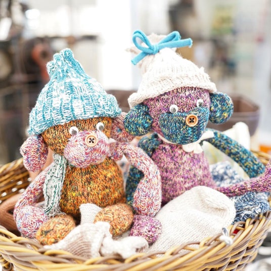 創喜が自社工場内で運営する「くつ下たのしむ実験室 S.Labo(エスラボ)」では、定期的に「SOUKI MONKEY」ワークショップを開催しています。スタッフが作り方を丁寧にレクチャーするため、裁縫初心者や小さなお子様でも安心して参加可能。さらに、ワークショップ限定で、靴下のB品を活用した帽子やマフラーなどの小物作りも体験できます。ものを大切にしながら、自分だけのぬいぐるみ作りを楽しんでみませんか?