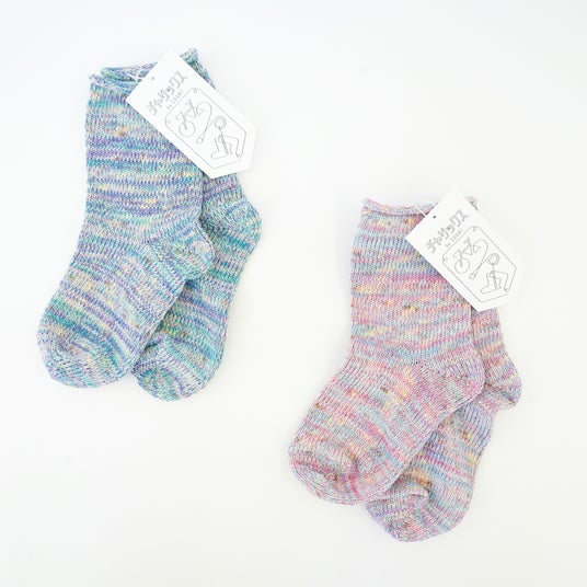 素材 : 綿93%、ナイロン5%、ポリウレタン2%(靴下) 綿100%(巾着)