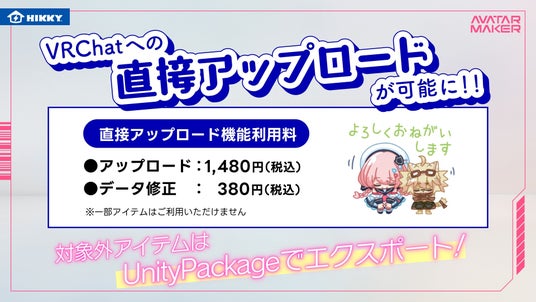 直接アップロード機能のご利用料金は、アバターのアップロードが1,480円(税込)、データ修正が380円(税込)です。