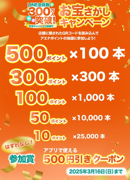 「アエナ公式LINE会員数300万人 突破記念!!お宝さがしキャンペーン」