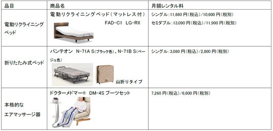 フランスベッド「フラッとレンタル」 レンタル対象商品一例