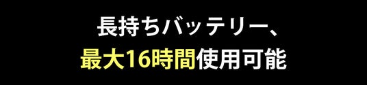 1200mAhの大容量バッテリーと高速、省エネのブラシレスモーターを採用し、フル充電で最大16時間の使用が可能。