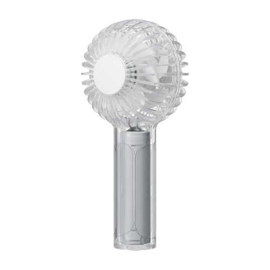 昨今、春の時点で気温が上がり、夏は特に外に出るのもためらうような気温が続くようになっています。屋外イベントも増えてきたなか、少しでも外の活動が涼しくできないかと考え、見た目も涼しくて大風量なハンディファンを企画、開発しました。2枚の羽根を使い、従来比約140%の風速を実現。見た目も爽やかなクリアボディのハンディファンができました。