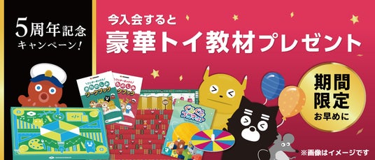 ワンダーボックスでは、5周年記念限定キャンペーンを開催中です。2025年3月10日(月)までにご入会いただいた方を対象に、トイ教材を全員にプレゼントいたします。