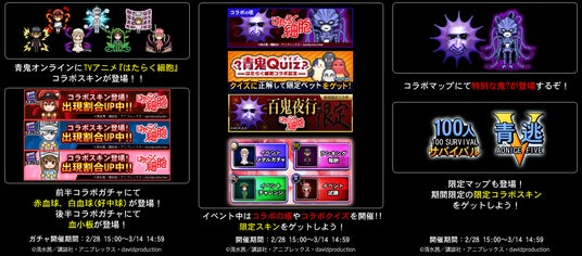青鬼オンラインに、TVアニメ『はたらく細胞 』のキャラクターが青鬼オンラインのコラボスキンとして登場!