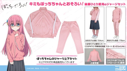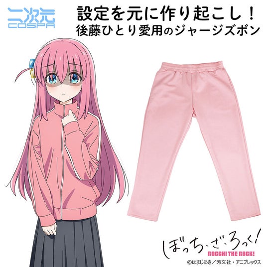アニメ「ぼっち・ざ・ろっく!」』 より、設定を元に形状を作り起こし、後藤ひとり愛用のジャージを国内縫製により商品化。後藤ひとり愛用のジャージズボンが二次元コスパから新たに登場です。