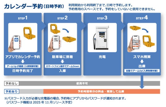 EV充電スポットにおいて、他の車両が駐車しているために充電ができないといった利用者の不満や、充電器所有者の機会損失を解消するためのシステムです。