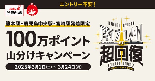 キャンペーン期間中に対象の駅を発着するJRキューポ特典きっぷをご利用いただいた方を対象に、JRキューポ100万ポイントを山分けでプレゼント。