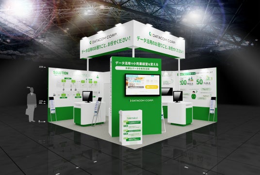 ブースのメインカラーはコーポレートカラーである緑と黄緑を基調にシンプルなデザインに仕上げました。また本年度のリテールテックのキャッチコピーとして「データ活用のお困りごと、お任せください!」を掲げ、ブース内では各製品のデモンストレーションやミニセミナーを実施いたします。
