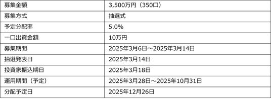 ◆ 「タスキ キャピタル重視型 第12号ファンド#1」募集要項