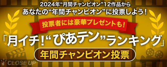 『月イチ!“ぴあテン”映画ランキング』年間チャンピオン投票あなたならどの作品を“年間チャンピオン”に選びますか?