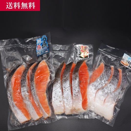 いろんな鮭を食べてみた~い!と言うあなたにオススメ!!鮮魚専門店で人気の鮭切身3種を詰め込みました。