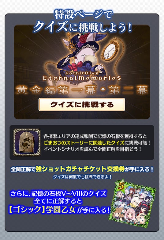 イベントの特設ページで、「ゴシックは魔法乙女」のメインストーリーに関するクイズを開催中です。