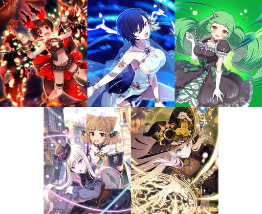 ▲【再堕落】ジギタリス(左上)、【再黄金】カトレア(中上)、【再怯弱】ルチカ(右上)、【再共闘】ロザリー(左下)、【再解竜】プルメリア(右下)の使い魔画像