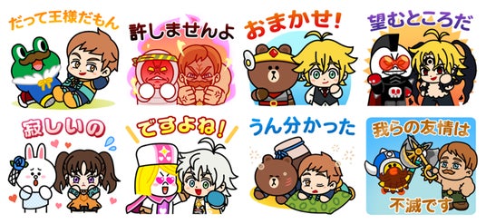 アニメ『七つの大罪 憤怒の審判』コラボの開催を記念したオリジナルLINEスタンプ(全8種)を配信します。入手方法については、ゲーム内のお知らせをご確認ください。
