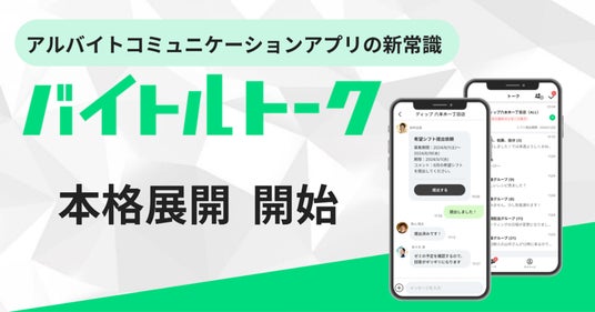 アルバイトと店舗管理者のコミュニケーションツールとして私用SNSを利用していることが多く、両社の調査では、アルバイト従業員の42%、店舗管理者側の49%がその現状に課題を感じていることがわかりました。(※1)特にシフト調整は煩雑で、そのコミュニケーション方法に本質的な課題があります。そこでコミュニケーションにおける課題を解決すべく、当社とアイリッジは「バイトルトーク」を開発し、2024年11月より先行開始いたしました。この度、「シフトの調整」「店舗掲示板」「PCによる本部管理」機能などを拡充し、本日より本格的に企業へサービス提供を開始いたします。本サービスを通じてコミュニケーション課題を解決し、誰もが働く幸せと喜びを感じる社会の実現につなげてまいります。