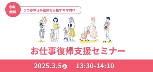 株式会社パソナは、この春お仕事復帰を目指す子育て中の女性を対象にした『お仕事復帰支援セミナー』を3月5日(水)に開催いたします。