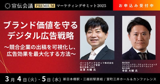 STREET HOLDINGSのグループ会社で、デジタルの知見を強みに企業のマーケティング・DX領域を支援する株式会社アドフレックス・コミュニケーションズ(本社:東京都港区、代表取締役:桑畑治彦、以下アドフレックス)は、2025年3月4日(火)~6日(水)に室町三井ホール&カンファレンスで開催される、「宣伝会議マーケティングサミットPREMIUM 2025」に登壇いたします。
