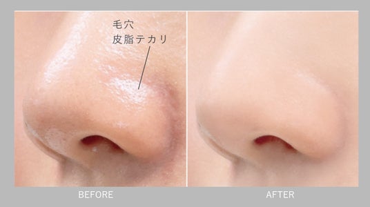 10μmの粒子が毛穴や凹凸にまんべんなく密着することで、皮脂を吸着して油分を抑え、メイクアップの持続性を高めます。