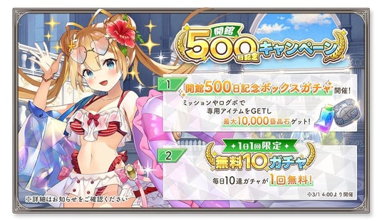 おかげさまで『ガールズクリエイション』は2025年3月6日に、サービス開始から500日を迎えます。