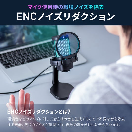 本製品は単一指向性のコンデンサーマイクを採用し、正面からの音声をしっかり捉えつつ周囲のノイズを軽減。さらにENCノイズリダクション機能により、不要な環境音を抑えてクリアな音声を届けます。ゲーム実況やライブ配信、オンライン会議でもプロレベルの音質を実現します。