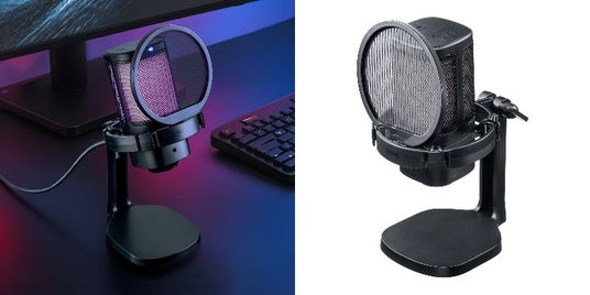 マイクを自由に角度調整ができるスタンドを標準装備。これにより、最適なマイクポジションをキープでき、長時間の配信や録音でも快適に使用可能です。さらにポップガードとショックマウントを搭載し、息による破裂音や振動ノイズを低減。まるでラジオ局のような本格的な収音環境を手軽に構築できます。