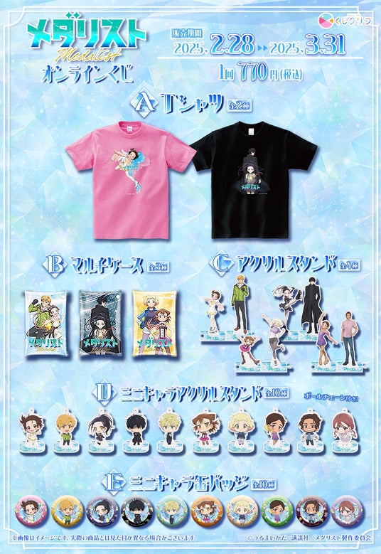 株式会社サトクリフ(本社:東京都千代田区、代表取締役社長:加藤 勝)は、運営するオンラインくじサービス「くじクリフ」より、アニメ「メダリスト」のオンラインくじを2025年2月28日(金)10:00より販売開始します。