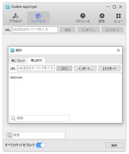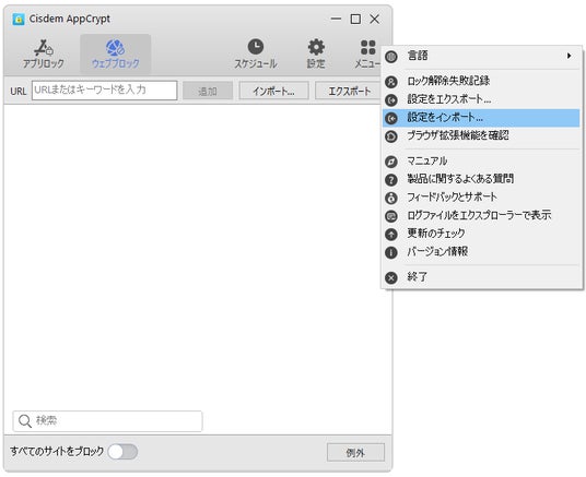 ユーザーはワンクリックでAppCryptの設定をインポート・エクスポートできますので、複数のデバイスでAppCryptの設定をするのは簡単になります。
